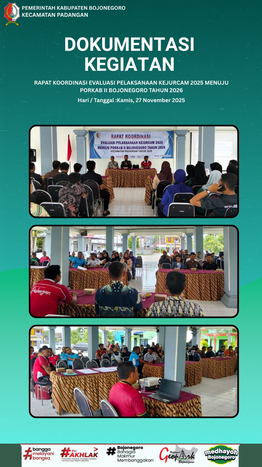 Acara : Rapat Koordinasi Evaluasi Pelaksanaan Kejurcam 2025 Menuju Porkab ll Bojonegoro Tahun 2026 .